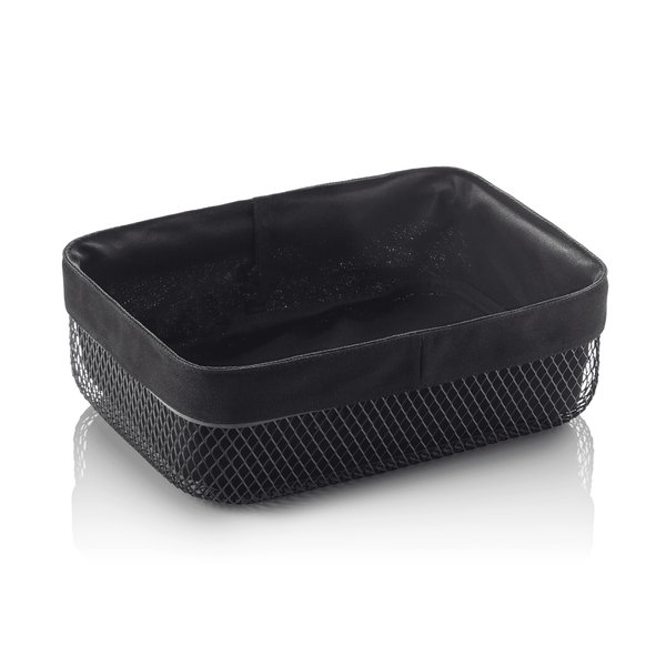 Brotkorb, Korb aus Metall/Baumwolle, 27,5 x 20 x 8,5 cm Mit diesem stilvollen Brotkorb aus Metall und Baumwolle haben Sie immer eine elegante Möglichkeit, Brot und Gebäck aufzubewahren und zu präsentieren. Der Korb hat eine Größe von 27,5 x 20 x 8,5 cm und wiegt nur 0,43 kg. Der schwarze Farbton verleiht Ihrem Interieur eine moderne Note und passt perfekt zu verschiedenen Küchendesigns.