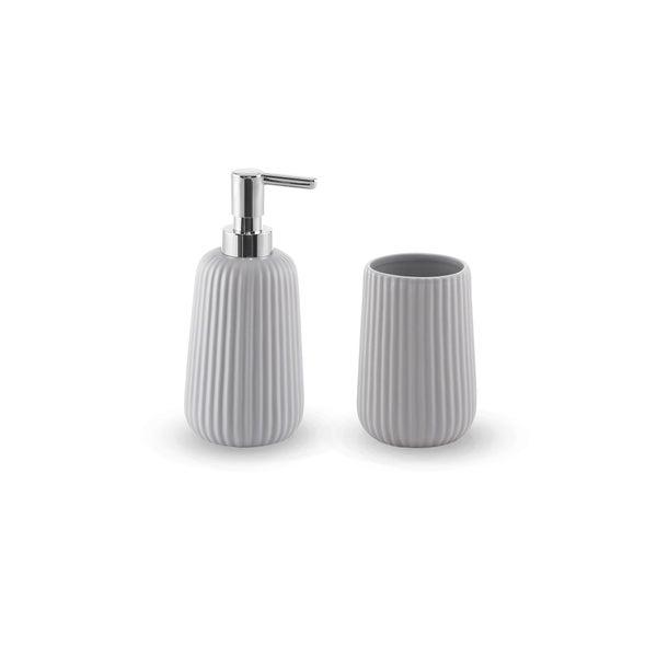 Badaccessoires Set in grauer Farbe bestehend aus Seifenspender und Zahnbürstenhalter | Dory