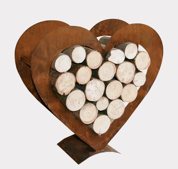 Unser beliebtes Herz Holzregal wird ohne Holz, ohne Schalen und in verschweißter Ausführung geliefert! Die passenden Schalen finden Sie ebenfalls in unserem Onlineshop. Herz-Holzregale dienen als praktische Aufbewahrungsmethode für Brennholz und werden sogleich zum tollen Hingucker im Garten oder Wohnbereich. Die Kombination aus Edelrost und Holz sorgt für ein einzigartiges rustikales Ambiente.