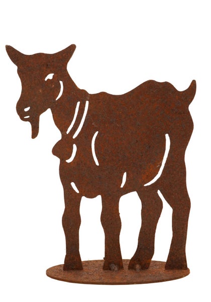 Aus robustem Rost gefertigt, ist unsere Deko-Ziege wetterbeständig.