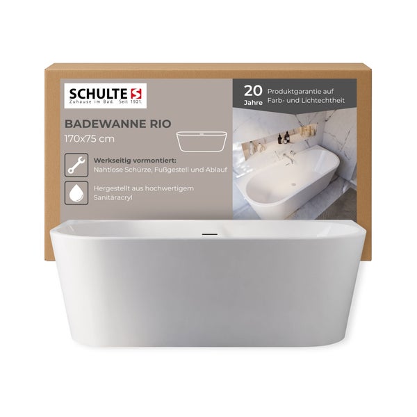 Badewanne Schulte Rio Vorwand 1700x750 mm weiß inkl. Ablaufgarnitur Push-Up, Chrom