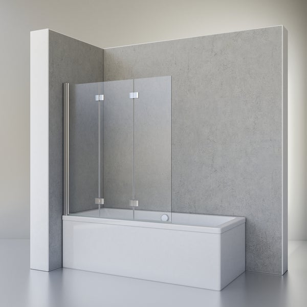 Mehr Duschkomfort ohne Komplettumbau: Der 3-teilige Badewannenaufsatz (130 × 142 cm) aus 5 mm Einscheiben-Sicherheitsglas (ESG) schützt zuverlässig vor Spritzwasser und erhält dank Klarglas die helle, offene Optik Ihres Bads. Als Badewannenfaltwand bietet er einen komfortablen Einstieg; das Profil in Chrom setzt einen dezenten, hochwertigen Akzent.