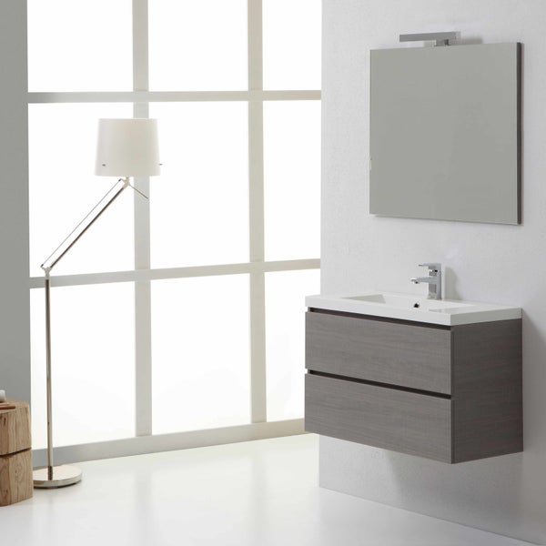 Badezimmer- Set, Komplett mit Waschtisch, Lampe und Spiegel, geringe Tiefe 39cm | Manhattan