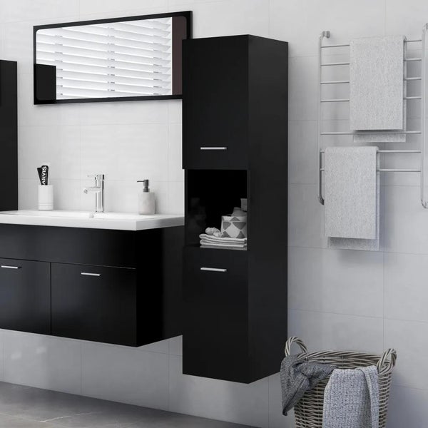 Badezimmerschrank Schwarz 30x30x130 cm Holzwerkstoff