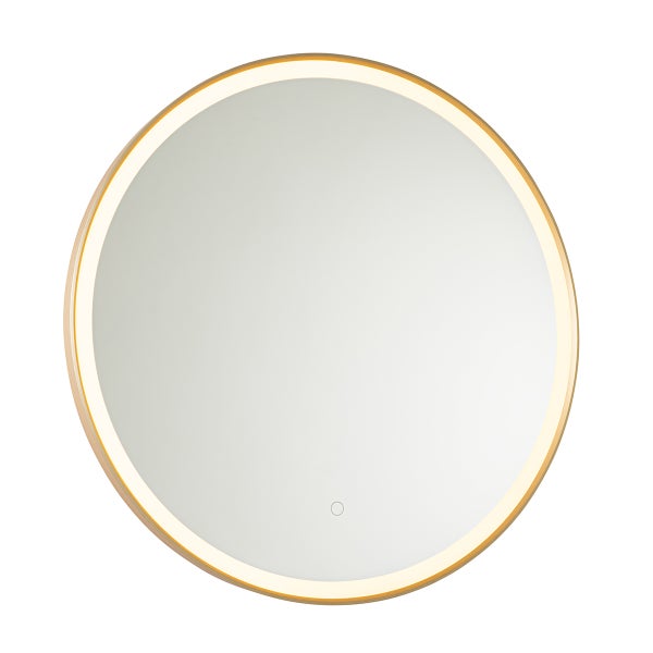Hole dir mit der Badezimmerlampe Miral das Hotel-Feeling in dein Zuhause. Diese runde Badezimmerlampe ist aus Glas mit Aluminium gefertigt und in Gold gehalten. Sie hat eine Tiefe von 3,5 cm und einen Durchmesser von 70 cm. Die Montageplatte hat eine Tiefe von 2,5 cm, eine Höhe von 41,5 cm und eine Länge von 40,5 cm. Der Spiegel hat einen Leuchtstreifen rundherum. Dieser LED-Streifen hat eine Lichtleistung von 1650 Lumen, 3000 - 6000 Kelvin und 17 Watt. Mit dem Touch-Dimmer auf dem Spiegel kannst du die Beleuchtung einfach ein- und ausschalten und die Lichtintensität selbst bestimmen. Dank der Schutzart IP44 ist er spritzwassergeschützt und für das Badezimmer geeignet. Der Spiegel ist mit einer Heizfunktion ausgestattet, die Kondensation verhindert. Die Außenseite des Badezimmerspiegels ist goldfarben, was ihn sehr zeitlos und schick macht. Verpasse deinem Badezimmer mit dem Miral-Badezimmerspiegel ein neues Aussehen!