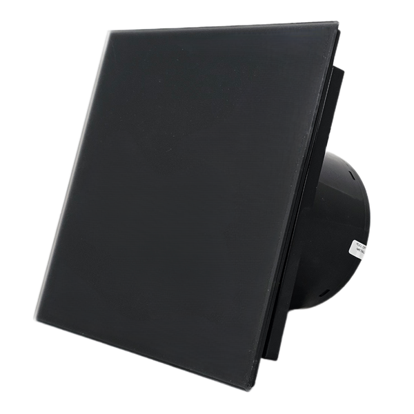 Leiser Badlüfter EOS 100 H BK mit Glasfront – Feuchtigkeitssensor & Nachlauf, energiesparend & modern.