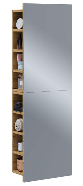 Der VCM Spiegelschrank Flandu XL passt durch das zeitlose und moderne Design in beinahe jedes Badezimmer. Insgesamt 16 seitliche Fächer, die sich hinter dem Spiegel befinden, bieten ausreichend Platz für Badezimmerutensilien und Kosmetikartikel.