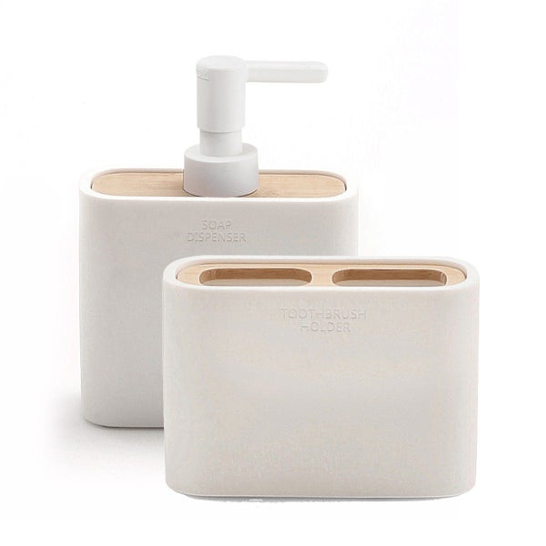 - Besteht ausSeifenspender, Zahnbürstenbecher