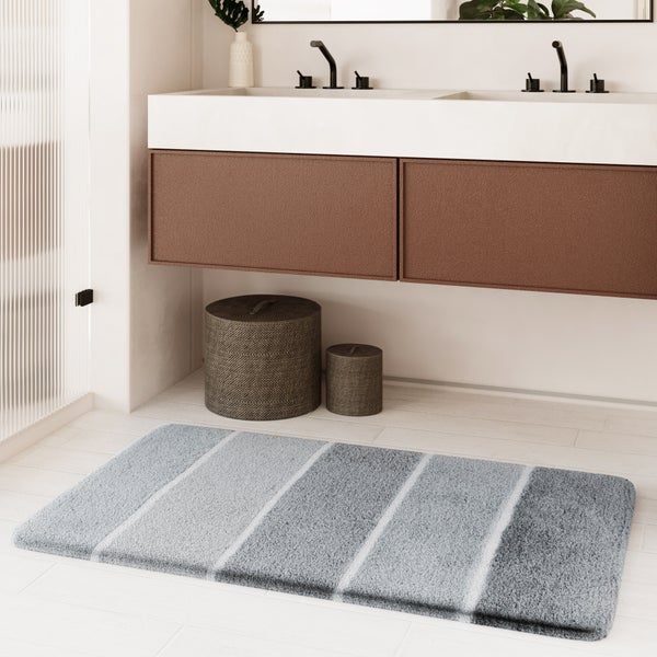 In moderner Streifenoptik setzt der getuftete Badezimmerteppich Rio Marina von Homie Living optische Highlights im Bad. Gemütlich und fusselfrei ist er ebenso. Flauschig und anschmiegsam passt sich Rio Marina seiner Umgebung an und sorgt für ein Wohlgefühl an den Füßen. Der nach Öko-Tex Standard 100 zertifizierte Teppich aus 100 Prozent Polyester ist vielseitig einsetzbar und pflegeleicht. Die rutschhemmende Gummierung eignet sich auch für Fußbodenheizungen und verträgt Maschinenwäschen bei 30 Grad. In verschiedenen Designs erhältlich, macht Rio Marina das Bad zum gemütlichen Style-Highlight.