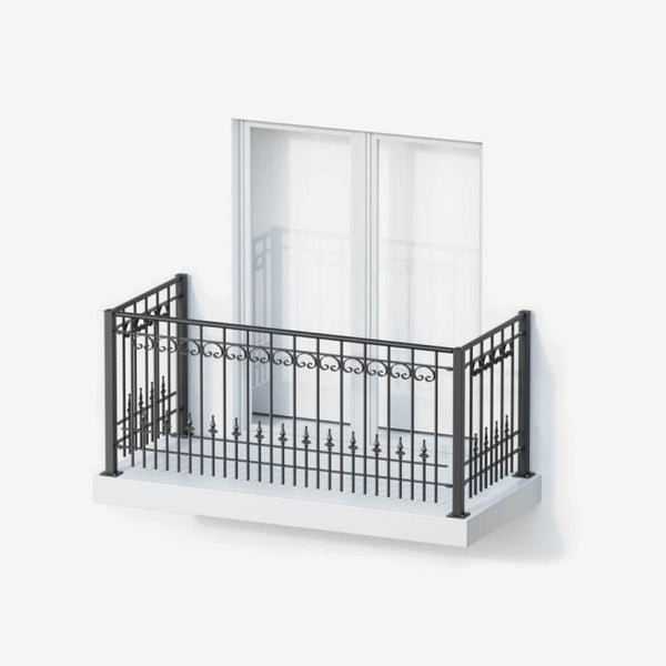 Unser Geländer Lucca verfügt über zahlreiche Details wie Zwischenstäbe, Kugellilienspitzen und C-Dekore. Das nostalgische Design macht Ihren Balkon zum Blickfang! Die Geländerbreite beträgt 192,5 cm bzw. 96 cm, die Höhe 90 cm (vor Montage). Das Balkongeländer Lucca ist von Hand gefertigt aus massivem, witterungsbeständigem Schmiedeeisen.