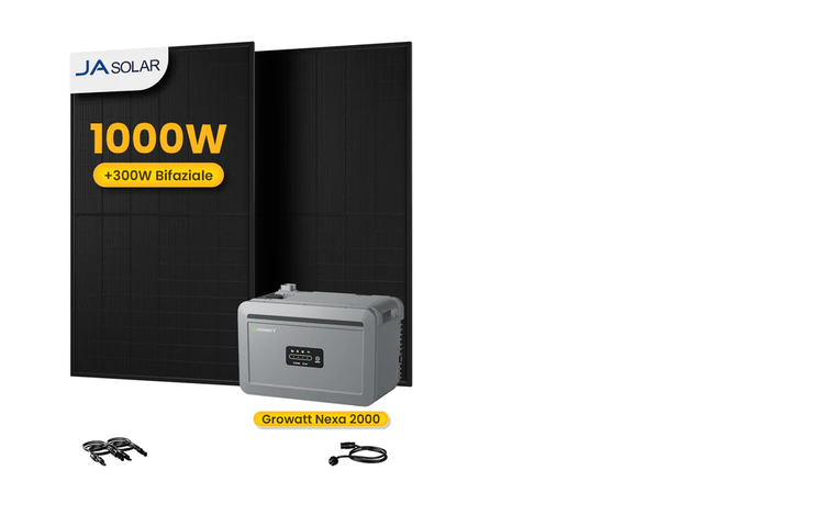 Balkonkraftwerk-Set: - Growatt NEXA 2000 All-in-One Speicher - 2x JaSolar Module Full Black Bifaciale (1000W Gesamt)