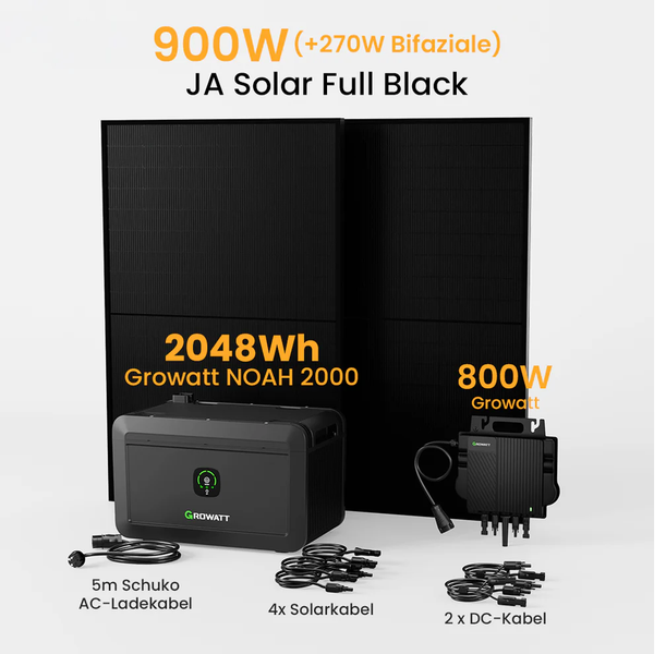 Balkonkraftwerk-Set: Growatt Noah, Growatt Wechselrichter & (2x) JaSolar Full Black Bifaciale (450er)