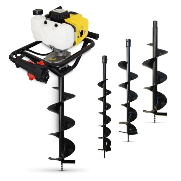 BAMATO EBO-80 Benzin Erdbohrer | 3 PS Leistung | 2 Takt Motor | inkl. Bohraufsätze 100/150/200 mm | Bohrlänge 800mm | Bohrer Erdlochbohrer Pfahlbohrer