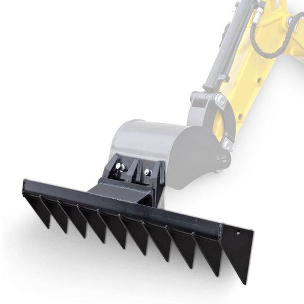 - Hinweispassend für BAMATO Minibagger MIB-600stabile Metallausführung mit 10 KrallenRechenbreite 1000 mmeinfache Montage an vorhandenen Löffelinkl. komplettem Befestigungsmaterial