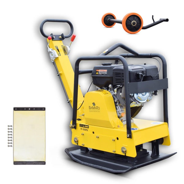 BAMATO Rüttelplatte R-165RV mit Vor- und Rücklauf | inkl. Zubehör | Verdichtungsdruck 30,5 kN | 8 PS Leistung | Verdichtungstiefe 500mm | Verdichter Rüttler Vibrationsplatte | Baustelle & Heimwerker