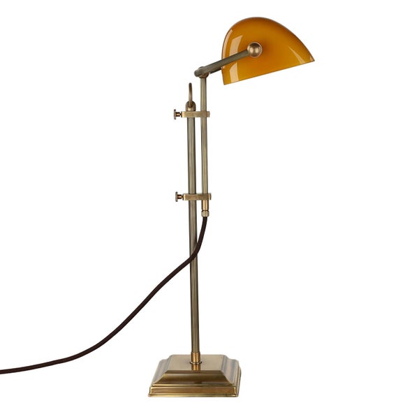 Bankerlampe Echt-Messing Glas 50 cm E27 Orange Jugendstil Tischleuchte