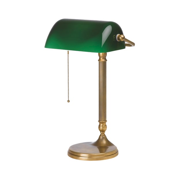 Bankerlampe Grün 42 cm hoch Glas Messing massiv E27 Jugendstil Schreibtischlampe