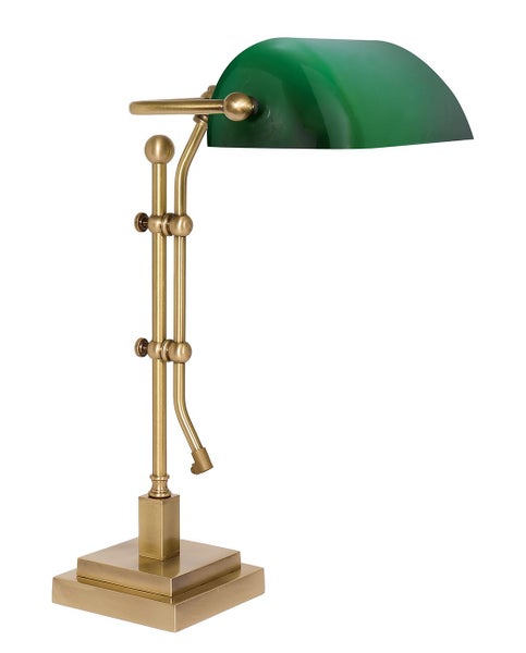Elegante Bankerlampe mit Zugschalter aus echtem Messing und Glas