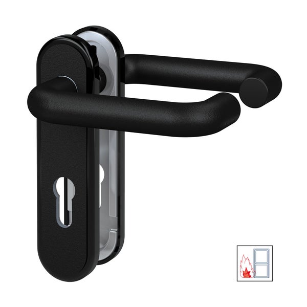 BASI FS-Drücker-Beschlag ZT/FS 2150 - PZ 72/9 mm Kunststoff schwarz Kurzschild rund geprüft nach DIN 18273