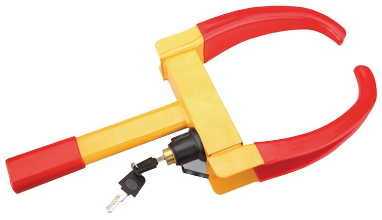 Ein sicherer Diebstahl-Schutz - die universell einsetzbare Radkralle verhindert das unerwünschte Wegfahren Ihres Fahrzeugs. Die Wegfahrsperre kann bei allen Fahrzeugen eingesetzt werden egal ob, PKW, LWS oder Wohnmobile. Geschlossen wird die Diebstahlsicherung durch das angebrachte Schloss. Die Lieferung er inklusive 2 Schlüssel. Das Material ist aus gehärteten Stahl mit Kunststoff Überzug.