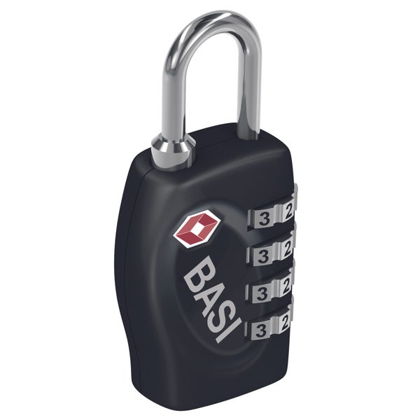 BASI TSA Kofferschloss KS 630 mit einstellbarer Kombination Stahlbügel Zinkdruckguss Gehäuse 4-stellige Zahlenkombination Schwarz