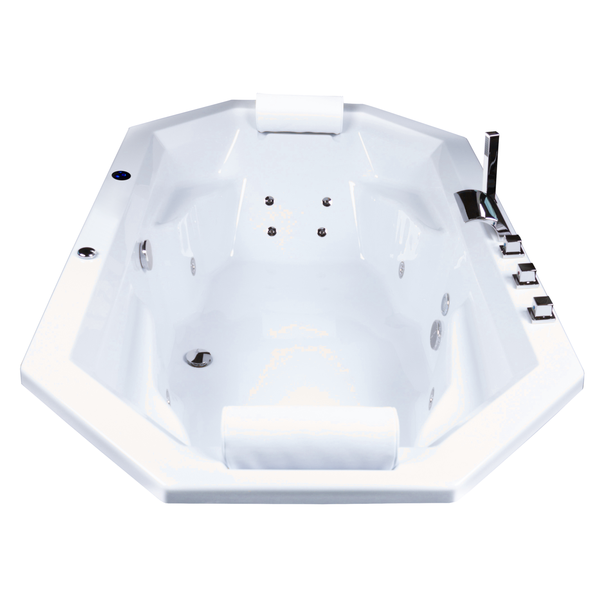 Dank der Leichtbauweise ist der Podest-Whirlpool Bora Bora perfekt für den Innenbereich geeignet. Seine Rückenschrägen und die gepolsterten Kopfstützen sorgen für eine komfortable Sitzposition. Die achteckige Raumsparwanne ist mit 12 leistungsstarken Massagedüsen ausgestattet, welche sich in 4 Seitendüsen und 8 Rückendüsen aufteilen.