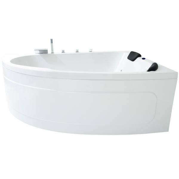 Der Whirlpool besteht aus hochwertigem reinem Sanitäracryl. Dieses Qualitätsmerkmal sorgt für eine optimale Wärmespeicherung sowie für ein angenehmes, warmes Hautgefühl beim Einsteigen in die Badewanne. Darüber hinaus wird im Laminierverfahren eine Glasfaserverstärkung auf die Außenseite der Eckwanne aufgetragen. Einzeln höhenverstellbare Füße schaffen einen Bodenausgleich von bis zu 10 cm. Das Fußgestell ist aus massivem rostfreiem Stahl und alle Eisenkleinteile sind von der deutschen Qualitätsmarke Würth.