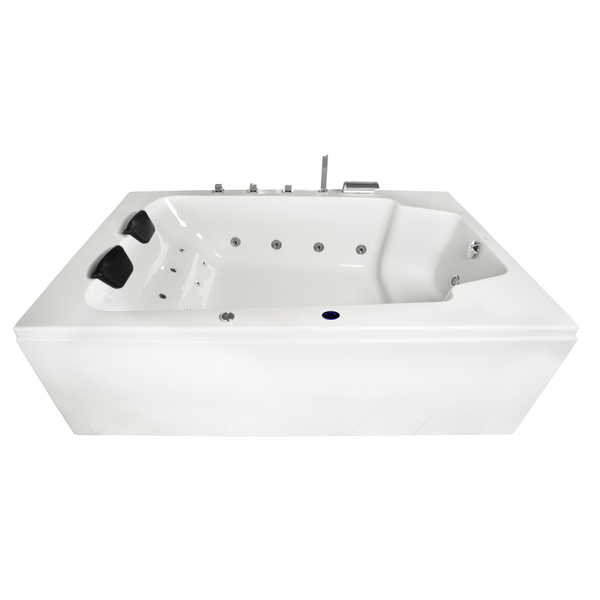 Dank der Leichtbauweise ist der Whirlpool XXL Milos perfekt für den Innenbereich geeignet. Seine Rückenschrägen und die gepolsterten Kopfstützen sorgen für eine komfortable Sitzposition. Die rechteckige Doppelwanne ist mit 16 leistungsstarken Massagedüsen ausgestattet, welche sich in 8 Seitendüsen und 8 Rückendüsen aufteilen.