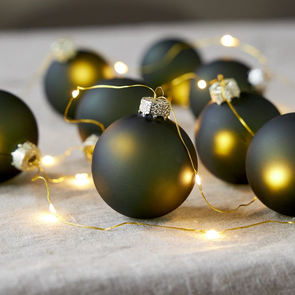 Batteriebetriebene Deko-Lichterkette ,Bliss', 8 dunkelgrüne Weihnachtskugeln mit LED-Lichterkette, Timer, L 160cm