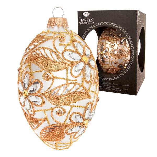 Baumschmuck Ei-Strassdekor Blumen und Blätter Silberfarbig 10cm, 1 Stck., Weihnachtsbaumkugeln, Christbaumschmuck, Weihnachtsbaumanhänger