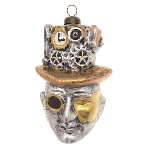 Baumschmuck Steampunk Kopf Silberfarbig 12cm, 1 Stck., Weihnachtsbaumkugeln, Christbaumschmuck, Weihnachtsbaumanhänger