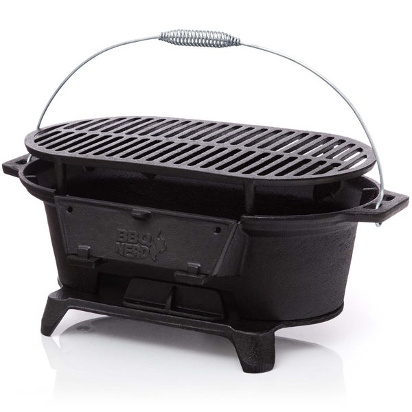 BBQ-Nerd© Holzkohlegrill Hibachi 50 x 25 x 23 cm | Massiver Campinggrill aus Gusseisen | Mobiler Tischgrill mit Tragegriff - Gusseiserner Grilltopf