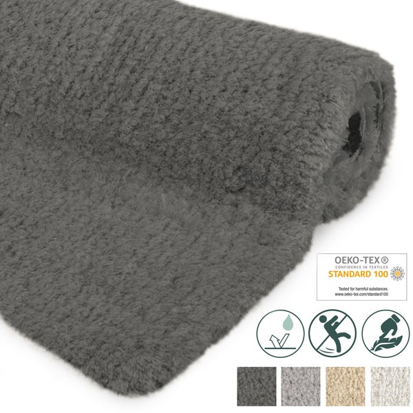 Die weiche Badematte ist äußerst bequem zu betreten und kuschelig weich. Dank der rutschfesten Rückseite ist der Badvorleger auch für Kinder bestens geeignet.