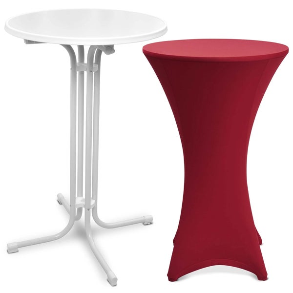 Beautissu Bellini Stehtisch Ø 80cm Weiß mit Stella Stehtischhusse Ø 80cm Bordeaux