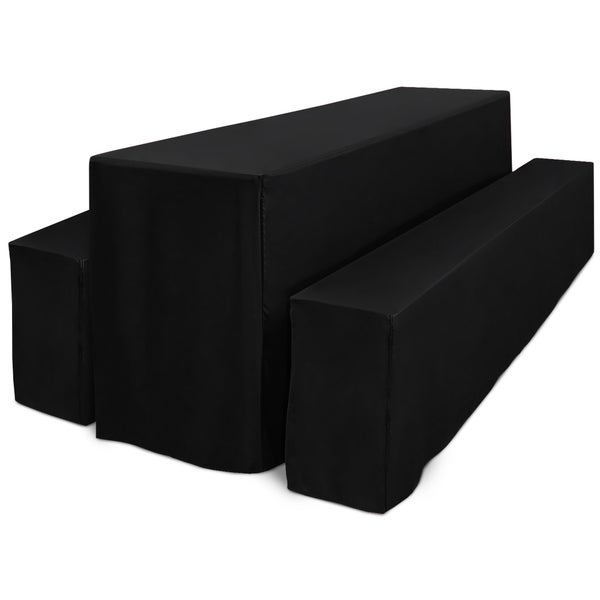 Beautissu Premium L Biertischhusse 70cm lang Schlitz Schwarz (3tlg)