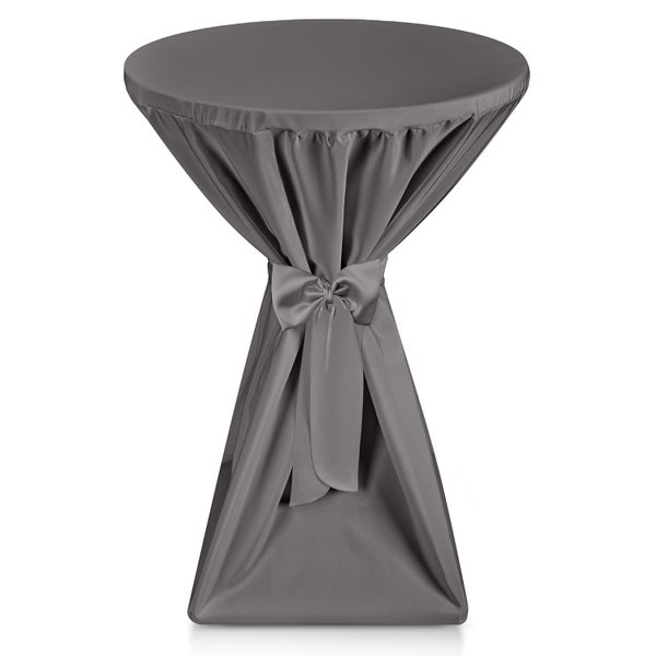 Die Polyester Stehtischhussen sind für Steh- und Bistrotische geeignet. Die Stehtisch Husse ist 145 cm lang und bedeckt die Tischfüße vollständig. Die beigefügte Schleife mit einer Größe von ca. 4,5x173 cm verleiht dem Tisch eine elegante Optik.