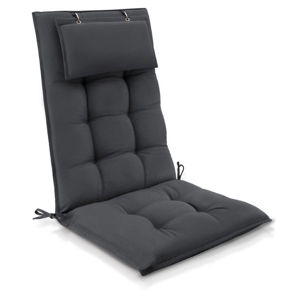 - HinweisGenießen Sie unvergleichlichen Komfort im Freien mit unserem Premium Hochlehner Auflagen-Set. Diese speziell entwickelten Sitzauflagen bieten Ihren Gartenstühlen einen neuen Standard an Gemütlichkeit. Mit den Maßen 120x50x8 cm und einer Sitzkissenlänge von 47 cm bieten sie eine großzügige Polsterung, die für maximalen Komfort sorgt. Besonders hervorzuheben ist der 1 cm vernähte Stehsaum, der für hohe Langlebigkeit und erstklassige Verarbeitung steht. Das Set enthält ein abnehmbares Kopfpolster, das mittels robuster Haken befestigt wird und Ihnen ermöglicht, die Sitzposition nach Ihren individuellen Bedürfnissen anzupassen. Die Auflagen sind zusätzlich mit verschiedenen Befestigungselementen ausgestattet, darunter ein Halteband im Rückenbereich und Bindebänder an der Lehne, um einen sicheren Halt und festen Sitz zu gewährleisten. Für optimalen Sitzkomfort sorgt die Füllung aus hochwertigem PU-Schaum mit speziell abgestimmten Raumgewichten für Rücken und Sitzfläche. Der Bezug besteht aus strapazierfähigem 100 % Strukturpolyester (220 gsm) und 100 % Polyester (200 gsm), was für eine robuste und langlebige Oberfläche sorgt. Darüber hinaus bieten die Auflagen mit einer UV-Lichtechtheit von 5 zuverlässigen Schutz vor Ausbleichen durch Sonnenlicht. Erhältlich in verschiedenen Farben, sowohl einzeln als auch im Set, sind unsere Hochlehner Auflagen die ideale Ergänzung für Ihren Garten, Ihre Terrasse oder Ihren Balkon. Gönnen Sie sich und Ihren Gästen luxuriösen Sitzkomfort und genießen Sie entspannte Stunden im Freien.