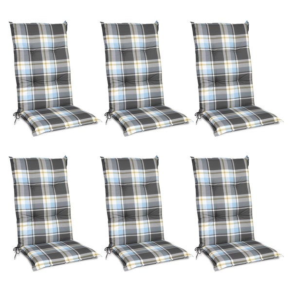 Beautissu Sunny BK Hochlehner 120x50x6cm Blau Kariert (6tlg)