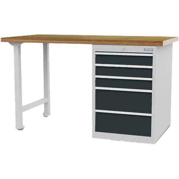 Hinweis: Diesen Artikel erhalten Sie als Speditionslieferung direkt vom Hersteller. Bitte geben Sie uns unbedingt eine Telefonnummer für die Spedition an. Des Weiteren kann dieser Artikel NUR innerhalb Deutschlands versendet werden. (This item can ONLY be shipped within Germany) Fußgestell aus Vierkantrohr Gehäuse: Pulverbeschichtet Einzel-Auszugssperre Einzelverriegelung pro Schublade möglich Zylinderschloss mit Zentralverriegelung und 2 x Schlüsseln Griffleisten mit Beschriftungsstreifen Merkmale Rastermaße: R 18-24 Material Gehäuse: Stahlblech Material Rahmen: Stahl-Vierkantrohr Material Arbeitsplatte: Buche Multiplex Schubladenanzahl: 5 Blendenhöhe in mm: 3 x 100, 2 x 200 Tragkraft Schublade(n): 100 kg Arbeitsplatte Breite in mm: 1.500 Arbeitsplatte Tiefe in mm: 750 Arbeitsplatte Stärke in mm: 40 Nutzhöhe Gehäuse in mm: 700