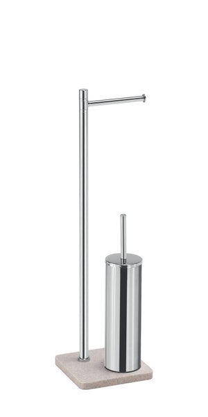 Beiger WC-Ständer mit Bürstengarnitur und Papierrollenhalter aus Kunststoff und Edelstahl | Re