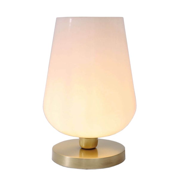 Dekorative Tischleuchte mit satiniertem Glasschirm und massivem Messingfuß