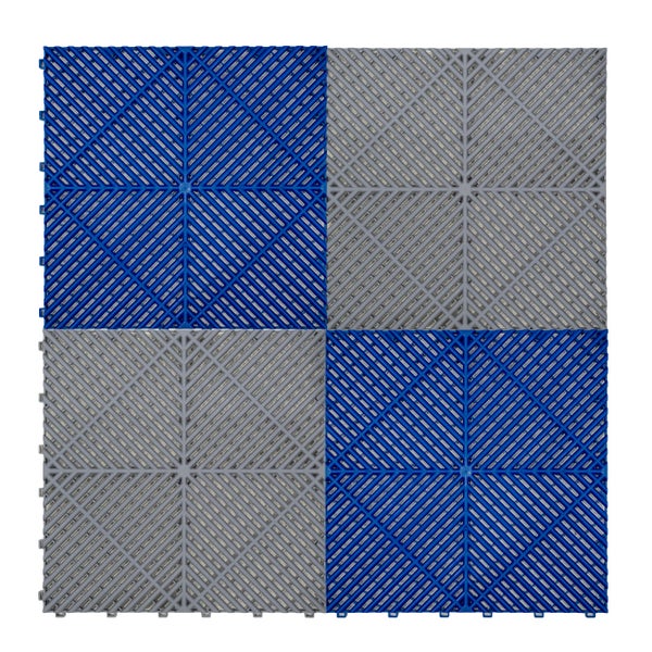 Belüftete Garagenbodenfliesen mit Kanten – 120 Grau und 120 Blau