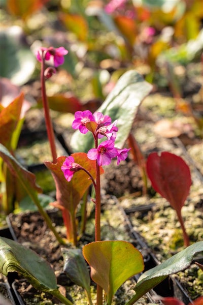 Bergenia cordifolia 'Eroica', Riesensteinbrech, rosa Blüten, ca. 11x11 cm Topf