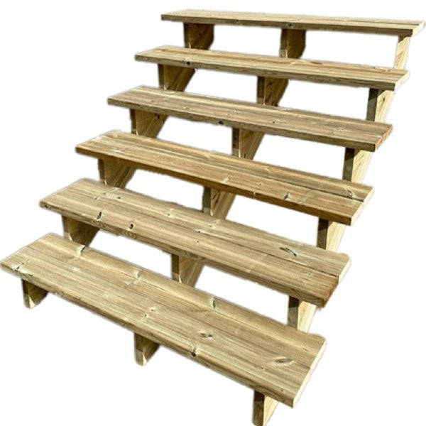 BERLIN Holz-Außentreppe, Gartentreppe, Terrassentreppe - 6 Offene Stufen 105 cm Höhe - 120 cm Breite