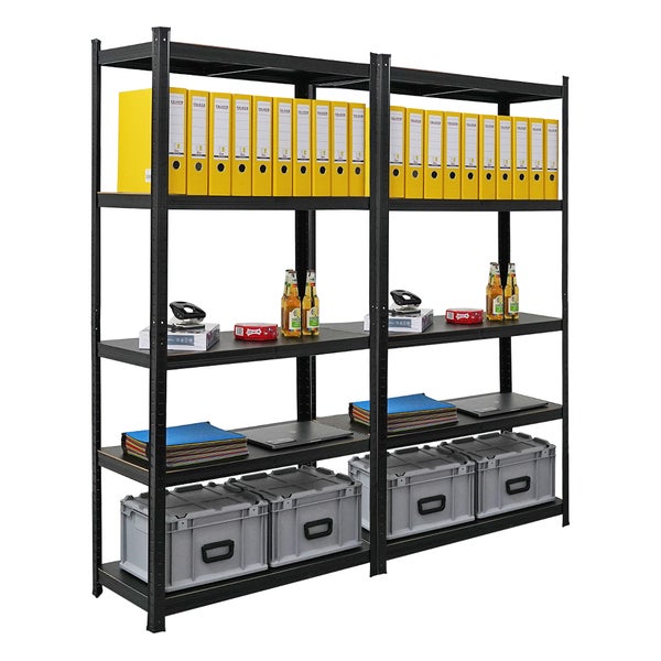Berlinlodge Mega Deal 2x Wohnregal Ragnar, HxBxT 180x90x40cm, Fachlast 100kg, Matt Shwarz, Bücherregal, Standregal, Büroregal für Wohnzimmer