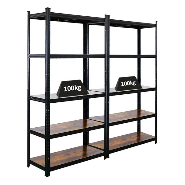 BERLINLODGE Mega Deal 2x Wohnregal Ragnar, HxBxT 180x90x40cm, Fachlast 100kg, Vintagebraun-Schwarz, Bücherregal, Standregal, Büroregal