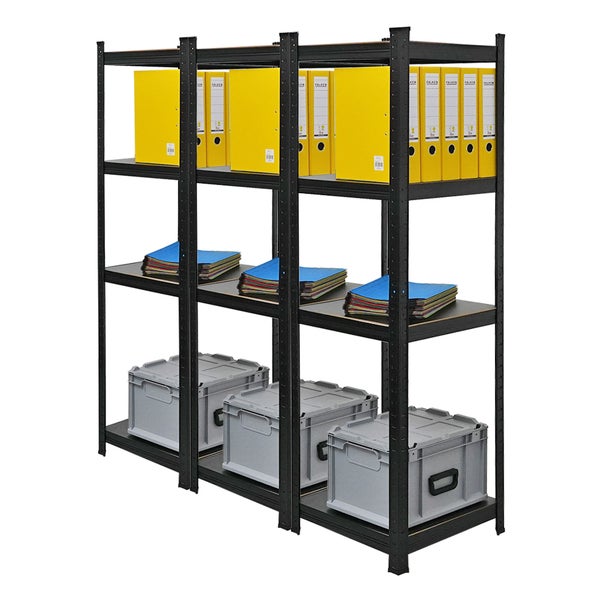 Berlinlodge Mega Deal 3x Wohnregal Ragnar, HxBxT 150x45x45cm, Fachlast 100kg, Matt Shwarz, Bücherregal, Standregal, Büroregal für Wohnzimmer