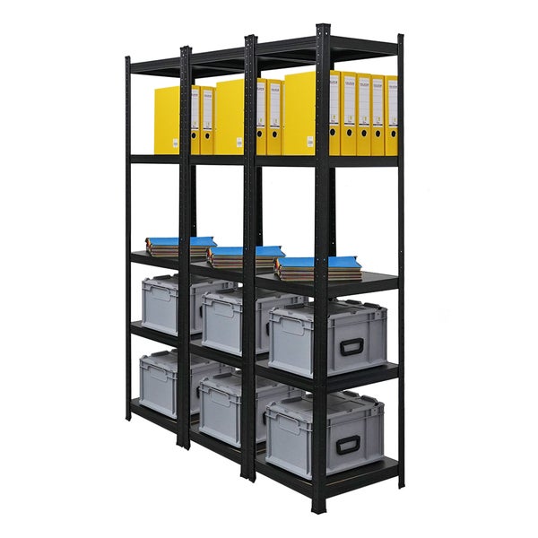 Berlinlodge Mega Deal 3x Wohnregal Ragnar, HxBxT 180x45x45cm, Fachlast 100kg, Matt Shwarz, Bücherregal, Standregal, Büroregal für Wohnzimmer