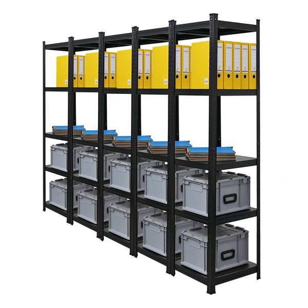 Berlinlodge Mega Deal 5x Wohnregal Ragnar, HxBxT 180x45x45cm, Fachlast 100kg, Matt Shwarz, Bücherregal, Standregal, Büroregal für Wohnzimmer