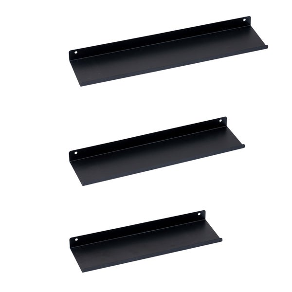 BERLINLODGE Wandregal Metall 3er Set | Matte Schwarz | Schweberegal Wandboards Bücherregal 3-Teiliges Hängeregal, Wanddeko und Ablage
